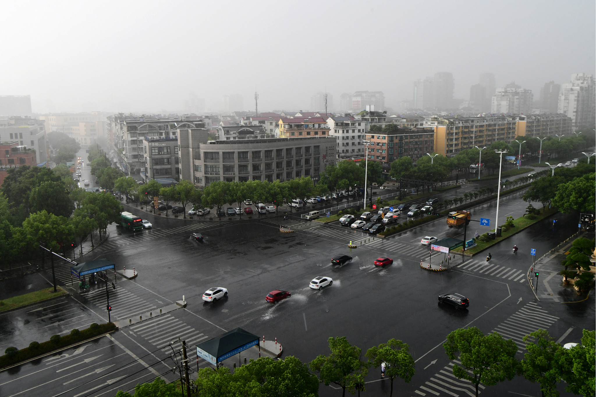 △ On July 18, 2023, affected by typhoon "Taili", Jinhua, Zhejiang Province ushered in heavy rain and the car was driving in the rain.
