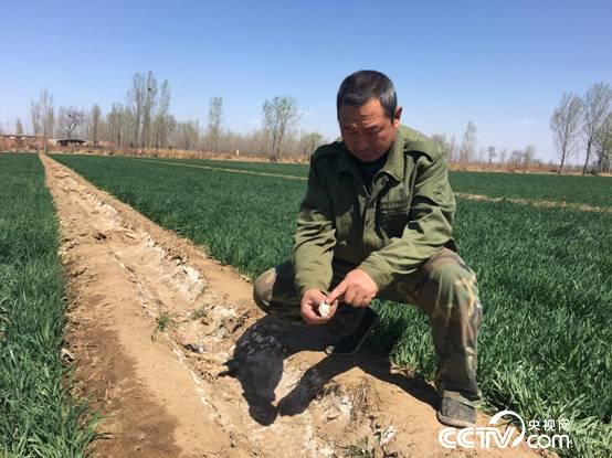 On March 30th, the reporter went to Tang Aizhong’s wheat field in the north of Min Town. The furrows are covered with a layer of white crystals, which are gently twisted into fine powder by hand. The root of wheat is a layer of white, covering the original light green of wheat.